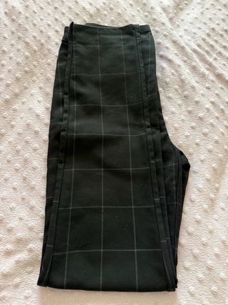 Pantalón de vestir Mango con un diseño a cuadros. - Diseño a cuadros. - Cintura con trabillas. - Cierre de botón y cremallera. - Pequeña obertura en el tobillo. - Bolsillos traseros de adorno - Botón interior para mejor ajuste. - Ligeramente elástico