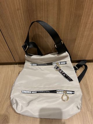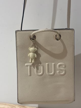 Bolso de la marca Tous en color beige, con un encantador detalle de oso. - Diseño elegante y versátil. - Cierre de cordón. - Incluye charm de oso. - Asa larga ajustable.