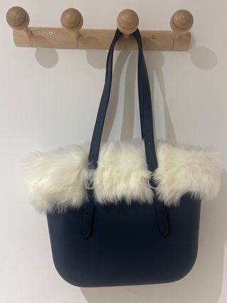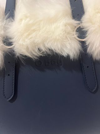 Bolso O Bag con un diseño moderno y elegante. - Cuerpo principal en color azul. - Acentos de pelo sintético en blanco.