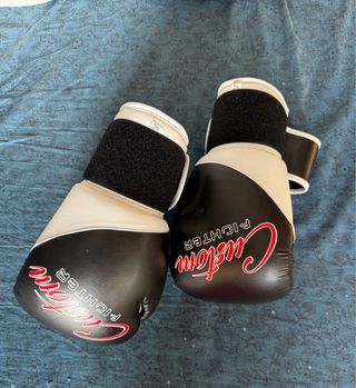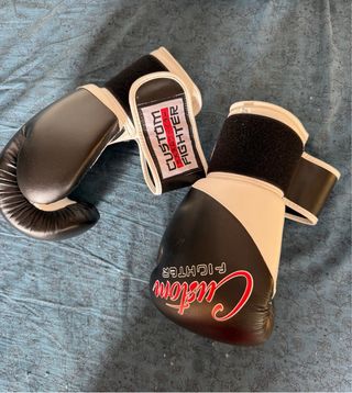 Par de guantes de MMA de la marca Custom Fighter. - Diseño bicolor en negro y blanco. - Cierre de velcro ajustable.