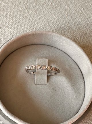 Elegante anillo con diamantes engastados en oro blanco de 18k. El peso total de los diamantes es de 0,50 cts. -Diseño clásico y atemporal. - Banda con múltiples diamantes certificación de HRD ANTWERP. Si entráis en la web hrdantwerp.com y en My HRD ponéis la referencia J1701023140 en buscar joya os saldrá todo lo relacionado con el anillo.