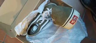 Zapatillas de la marca Vans en color verde oliva. Utilizazas una sola vez - Talla 43. - Diseño con franja lateral blanca. - Cordones blancos. - Logo de Vans en la plantilla y etiqueta.