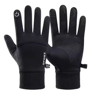 Guantes negros con diseño deportivo. - Detalle de SPORT en el dorso. - Puño elástico acanalado. - Cierre ajustable en la muñeca. - Superficie táctil en los dedos índice y pulgar.