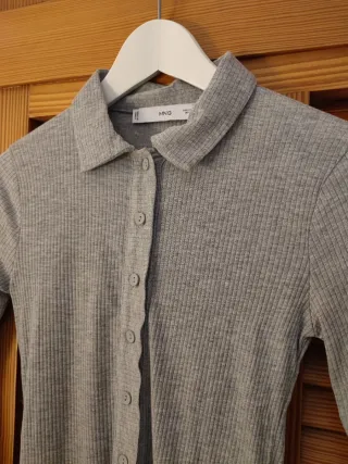 Camiseta de manga larga con cuello camisero y botones. - Tejido de canalé. - Corte ajustado.
