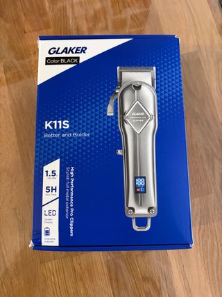 Maquinilla cortapelo y barba GLAKER K11S. Diseño elegante y moderno,usada una vez en un niño de 2 años. - Carga rápida de 1.5 horas. - Autonomía de 5 horas de uso. - Pantalla LED. - Indicador de carga. - Exterior de metal.