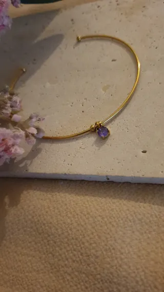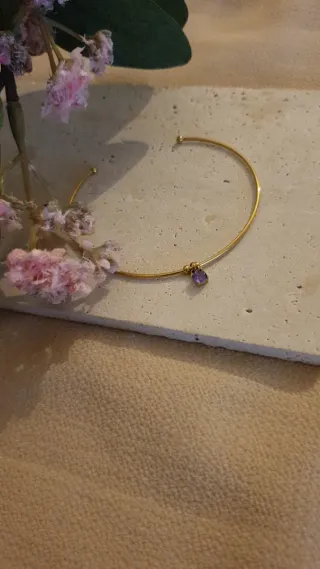 Elegante pulsera chapada en oro con un detalle de charm. - Diseño delicado y fino. - Charm con piedra morada.