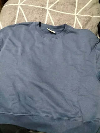 Sudadera azul para mujer de la talla 36/S. Cuello redondo y felpa por dentro, bien calentita. Marca Pull&Bear, nunca utilizada. Siempre ha estado doblada.