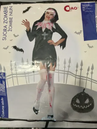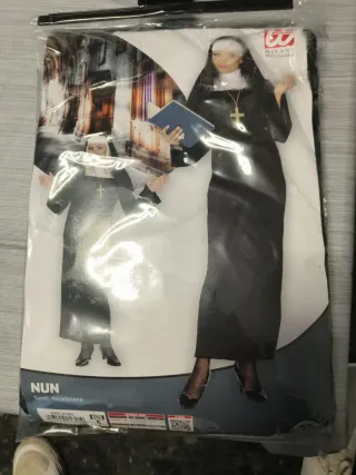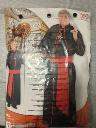 Disfraz de sacerdote con detalles en rojo. Ideal para eventos o fiestas temáticas. - Capa y túnica negra. - Fajín rojo con flecos.
