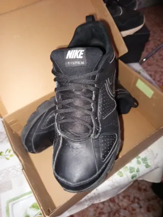 Zapatillas deportivas Nike para hombre en color negro. Diseño clásico y cómodo. Talla 46 Muy poco uso, están perfectas. - Parte superior de cuero sintético. - Suela de goma duradera. - Cierre de cordones.