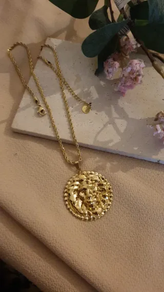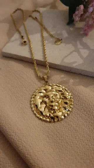 Elegante collar con un llamativo colgante. - Diseño de cadena trenzada. - Colgante con relieve detallado.