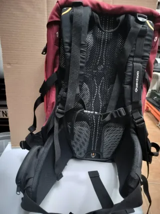 Mochila grande con un diseño moderno y funcional. - Compartimento principal espacioso. - Bolsillos exteriores para acceso rápido. - Correas ajustables para mayor comodidad. - Sistema de ventilación en la espalda. Utilizada solo una vez. Capacidad más de 30 litros, capacidad adecuada para ir de campamento.
