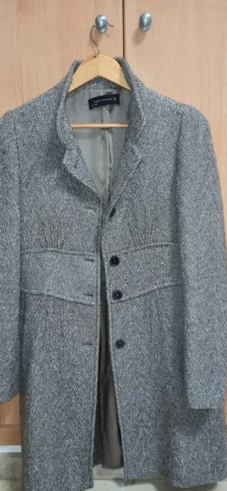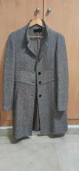 Elegante abrigo de Zara con un diseño clásico y favorecedor. - Tejido texturizado con un patrón de espiga. - Corte entallado que realza la silueta. - Cierre de botones. - Cuello alto.