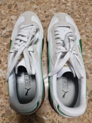 Zapatillas deportivas Puma con un diseño moderno y cómodo. - Combinación de blanco y detalles en verde. - Logo de Puma en la plantilla. - Suela de goma.