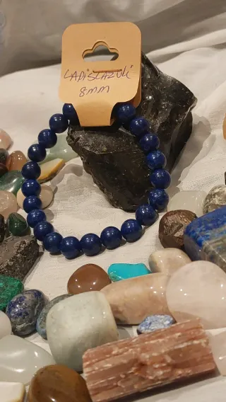 Pulsera elaborada con cuentas de piedra natural lapislázuli.Tamaño de las cuentas: 8mm.El lapislázuli tiene un profundo significado espiritual de sabiduría, verdad y comunicación, abriendo el chakra de la garganta para la autoexpresión y la conexión con lo divino, mientras que su azul intenso fomenta la paz interior, la introspección y la protección contra energías negativas, aliviando el estrés y potenciando la intuición. Es una piedra para el autoconocimiento, el equilibrio mental y la conexión con el camino espiritual, vinculando lo terrenal y lo celestial.