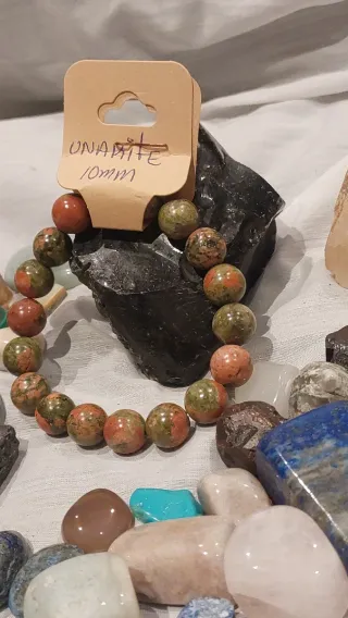 Pulsera elaborada con cuentas de piedra natural Unakita.Tamaño de las cuentas: 10mm.La unakita es una piedra espiritual de visión, equilibrio y transformación, que armoniza el corazón y el espíritu al liberar emociones pasadas para el crecimiento personal, abriendo el camino hacia el futuro sin olvidar las lecciones vividas, fortaleciendo la autocompasión y la conexión con la tierra para una mayor estabilidad y claridad interior.