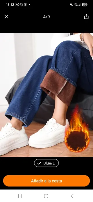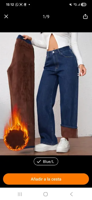 Pantalón vaquero con forro interior afelpado para mayor calidez - Diseño de corte acampanado - Cintura alta - Cierre de cremallera y botón.