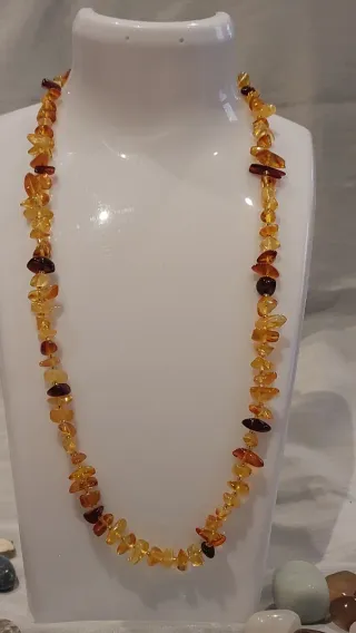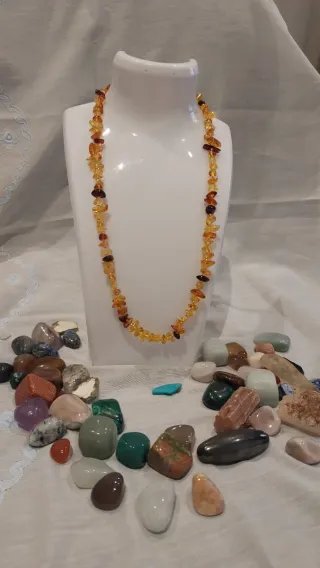 Collar hecho con piedras naturales de ámbar.Piedras de ámbar en tonos marrones y amarillos. - Diseño único y artesanal.El ámbar es considerado un poderoso amuleto de protección que ayuda a purificar el aura y a eliminar las energías negativas. Se cree que aleja la mala suerte y atrae vibraciones positivas.