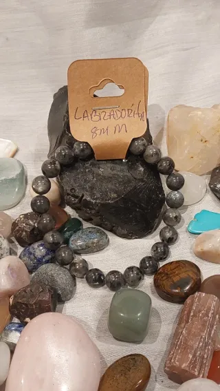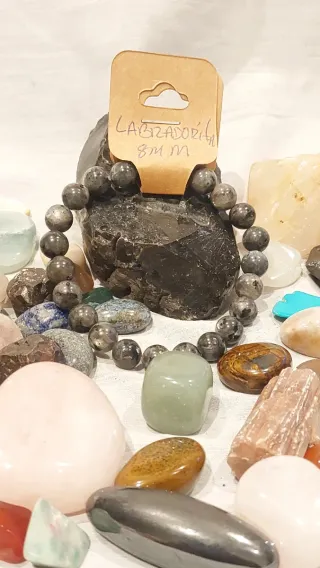 Pulsera elaborada con cuentas de piedra natural Labradorita.Cuentas de 8 mm de diámetro. - Piedra natural con destellos únicos.La labradorita se considera un poderoso protector que forma una barrera contra las energías negativas. Ayuda a preservar el equilibrio energético y a proteger el aura.