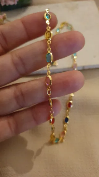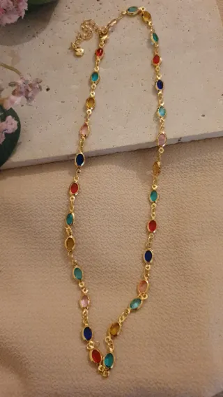 Elegante collar chapado en oro con un diseño de piedras de colores. - Diseño de piedras ovaladas. - Cadena dorada. - Cierre de mosquetón.