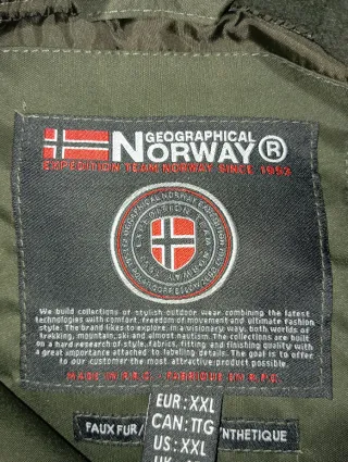 Cazadora impermeable de la marca Norway en color verde. Talla XXL. - Material exterior: Faux Fur / Sintético. - Tallas: EUR XXL, CAN TTG, US XXL, UK 47. - Fabricada en R.P.C.
