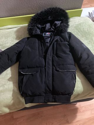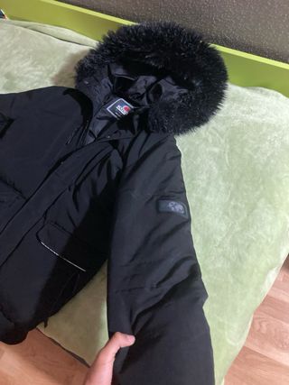 Cazadora de invierno con capucha de pelo sintético. - Cierre de cremallera. - Bolsillos frontales con solapa. - Puños y bajo elásticos.