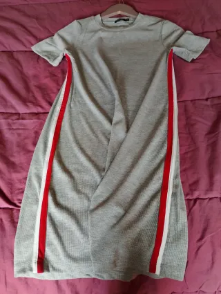 Vestido de Bershka con un diseño moderno y detalles deportivos. - Tejido acanalado gris. - Raya lateral en color blanco y rojo. Sin estrenar.
