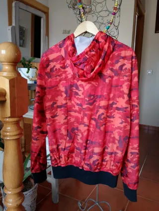 Cortavientos con un llamativo estampado de camuflaje en tonos rojos y oscuros. - Diseño con capucha. - Cierre de cremallera frontal. - Bolsillos laterales con cremallera. - Puños y bajo elásticos.