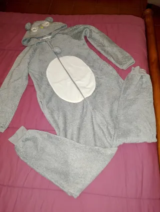 Pijama entero con capucha, ideal para estar cómodo en casa. Suave y calentito. - Diseño de búho en la capucha. - Detalle de pompón. - Puños elásticos en mangas y piernas.