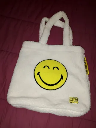 Bolso de borrego con un divertido diseño de Smiley. - Material suave y esponjoso. - Detalle de Smiley en la parte frontal. - Pequeño logo de Smiley World en la parte inferior. Dimensiones en fotos.