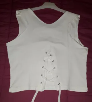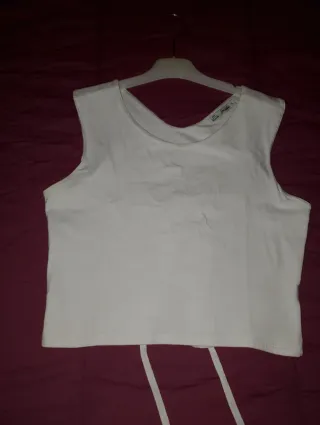 Camiseta blanca de corte moderno, ideal para combinar. - Diseño sin mangas. - Detalle de cinta en la parte trasera. Aunque marca una L es más bien una M.