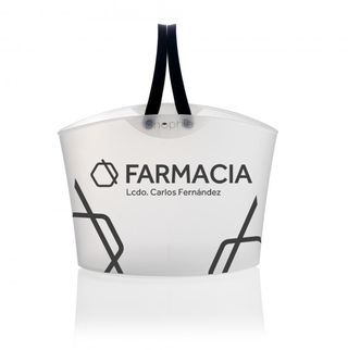 Cesta de la marca Araven - Shophie, ideal para farmacias o tiendas de regalo. Su diseño es moderno y funcional. - Material translúcido. - Asas negras. - Base estable.
