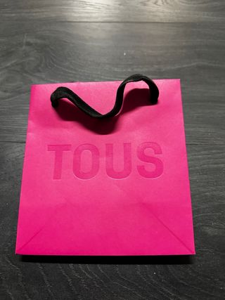 Bolsa de la marca Tous en color rosa. - Asas negras. - Logo de la marca en grande.