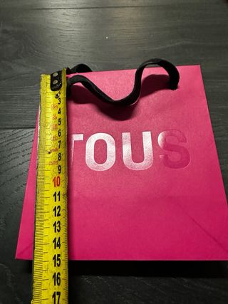 Elegante bolsa de la marca Tous en color rosa. - Asa negra. - Logo de Tous en relieve.