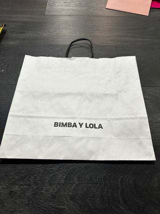 Bolsa de papel de la marca BIMBA Y LOLA. - Color blanco. - Asas negras.