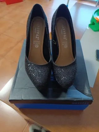 Elegantes zapatos de tacón con un toque brillante. - Diseño con purpurina. - Tacón alto. - En perfecto estado, como nuevos. Usados en dos eventos