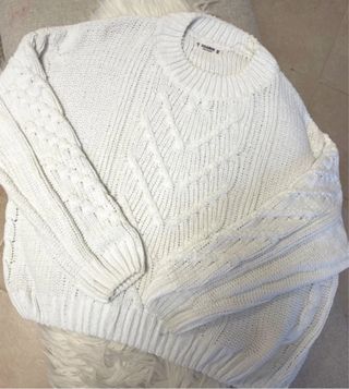 Jersey de punto blanco de Pull&Bear con un diseño de trenzado. - Cuello redondo. - Manga larga. - Tejido de punto grueso.