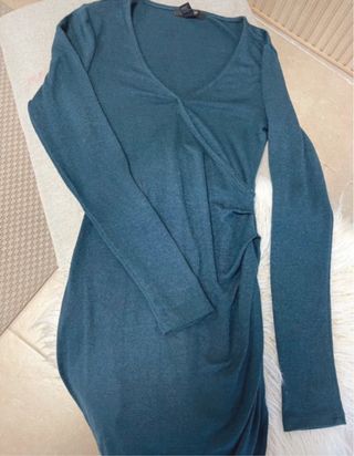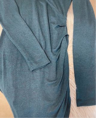Vestido elegante de manga larga con cuello en pico y detalle cruzado. - Tejido suave y cómodo. - Diseño cruzado. - Manga larga.