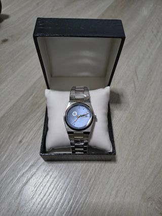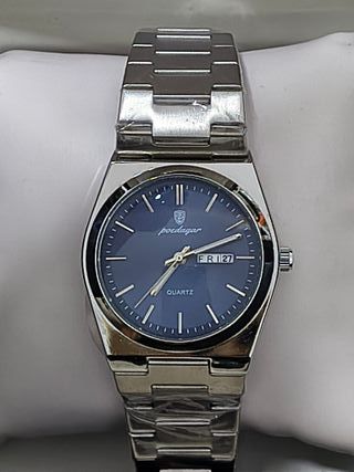 Elegante reloj plateado y azul