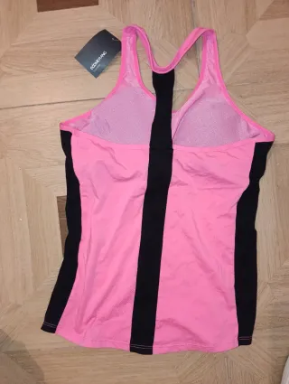 Camiseta deportiva de la marca Boomerang en color rosa. - Diseño con tirantes. - Paneles laterales en color negro. - Costuras visibles en la parte inferior. - Talla 42.