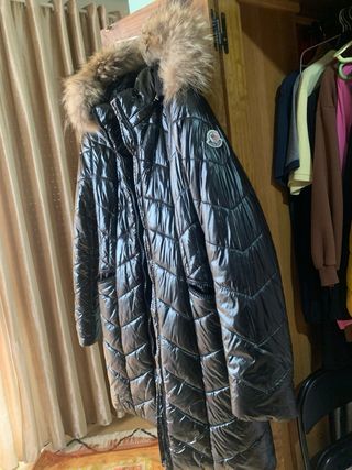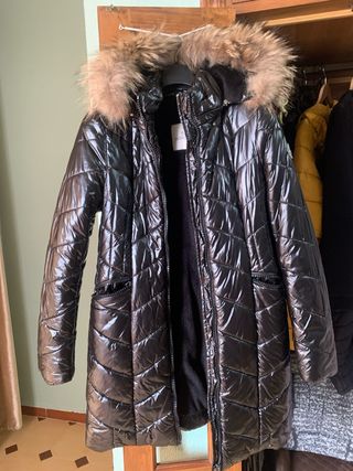 Elegante chaqueta acolchada con capucha y pelo. - Diseño brillante. - Cierre de cremallera. - Bolsillos con cremallera. - Tiene un problema bajo las manos que no se nota mucho. - Es original, tiene su codigo QR. - Precio negociable. - Su precio original ronda los 2000€.