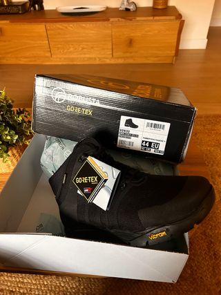 Botas de montaña Robusta con tecnología Gore-Tex. Perfectas para senderismo y actividades al aire libre. - Material exterior de malla transpirable. - Suela Vibram para un agarre óptimo. - Membrana Gore-Tex impermeable y transpirable. Sin estrenar. Precio en Leroy Merlin: 131 euros.