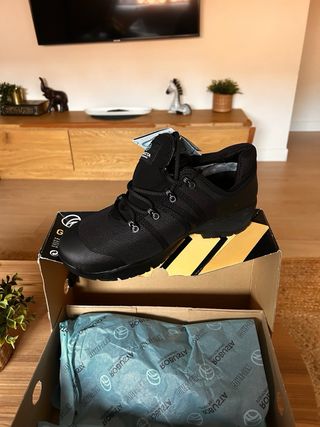 Zapato de trabajo con tecnología Gore-Tex. - Material exterior de malla transpirable. - Suela Vibram para mayor agarre. - Cierre de cordones. - Diseño de caña baja. Nueva a estrenar. Precio en Leroy merlin: 125 euros