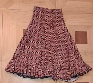 Falda larga con un bonito estampado. - Diseño con volantes en el bajo. - Medida: cintura 66 cm. De largo desde la cintura al volante 69 cm.