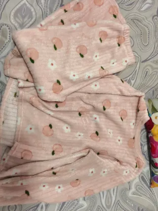Conjunto de pijama de invierno con un adorable estampado. - Tejido suave y cálido. - Diseño con melocotones y flores blancas.
