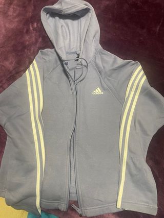 Chándal deportivo Adidas para mujer. - Diseño con las icónicas tres rayas en las mangas. - Cremallera frontal completa. - Capucha con cordones ajustables.