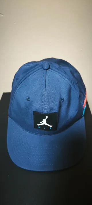 Gorra de la marca Jordan con un diseño llamativo. - Combinación de colores azul y multicolor. - Logo de Jordan en el frontal.