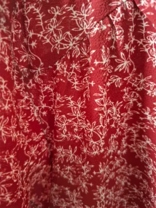 Vestido de flamenca en color Buganvilla Presenta un diseño elegante con detalles de volantes rizados. Adaptable al cuerpo y muy cómodo. Puesto 2 veces Con mucho para sacar hasta una 44 - Mangas largas con volantes. - Falda con volantes en el bajo. - Escote en V.