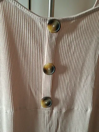Mono corto de tejido acanalado con tirantes de volantes y detalle de botones en la parte delantera. Color rosa palo. Visita mi perfil.