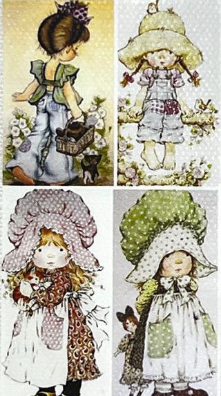 Conjunto de cuatro encantadoras figuras de niñas, con un estilo vintage y detallado. - Cada figura representa a una niña con atuendos y sombreros. - Diseños delicados y colores suaves. - Ideales para coleccionistas o decoración.