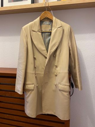 Abrigo de cuero beige mujer
